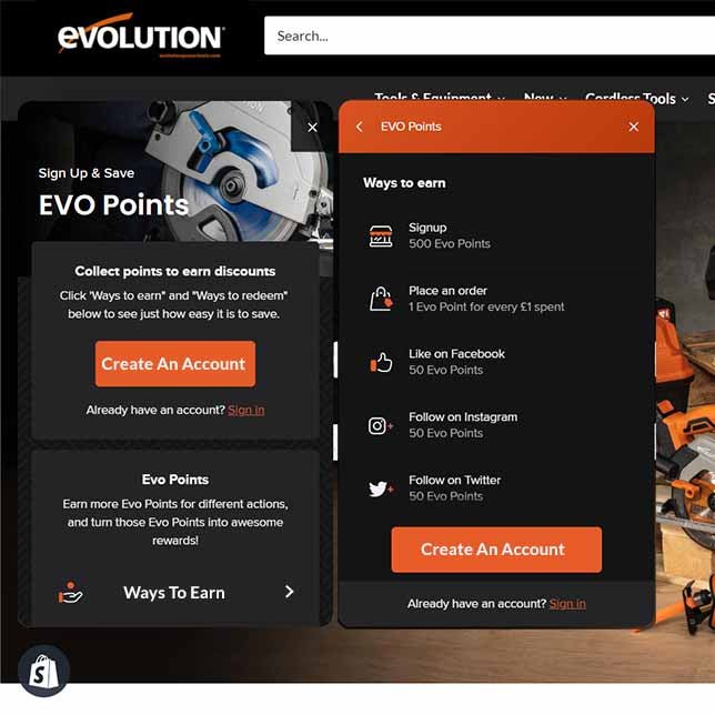 Join over 10,000 Evolution power tools Customer who have saved over £200,000 on their tools at shop.evolutionpowertools.com by joining our EVO Points Loyalty Scheme.