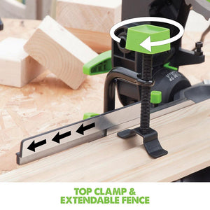 A 210mm Compound Mitre Saw from Evolution with Multi-Material cutting technology. One saw, one blade, cuts all.* Accurate cutting with 0 - 45-degree bevel tilt and 50 - 50-degree mitre angles. Reliable, smooth, square cut every time in a variety of materials. Powerful 1200W hi-torque motor with optimized gearbox & blade system. Compact, lightweight & robust design, weighing only 5.8kg. Easy to carry with one hand and store away taking up very little space.
