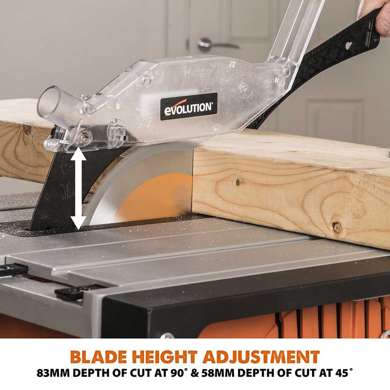 Evolution R255PTS 255mm Table Saw With TCT Multi-Material Cutting Blade