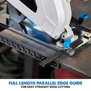 • Heavy Duty steel base with sightlines and workpiece contact guides.